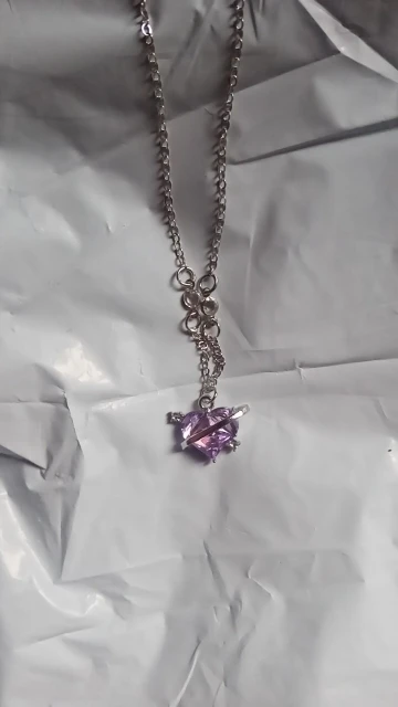 Answer 1: The necklace features a radiant pink crystal set within a polished heart pendant, complemented by an elegant silver-tone finish for a luxurious yet affordable look.